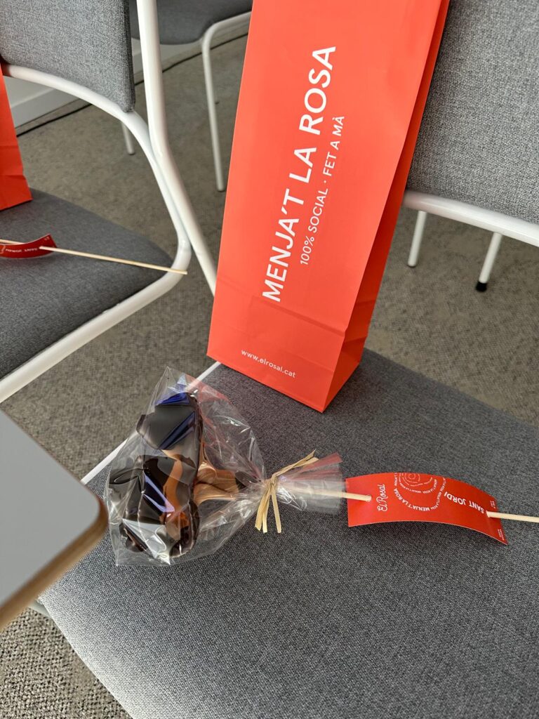 Durant l’acte es va fer entrega d’una rosa elaborada amb galeta i xocolata a tots els assistents per commemorar simbòlicament la diada de Sant Jordi de l’endemà.
